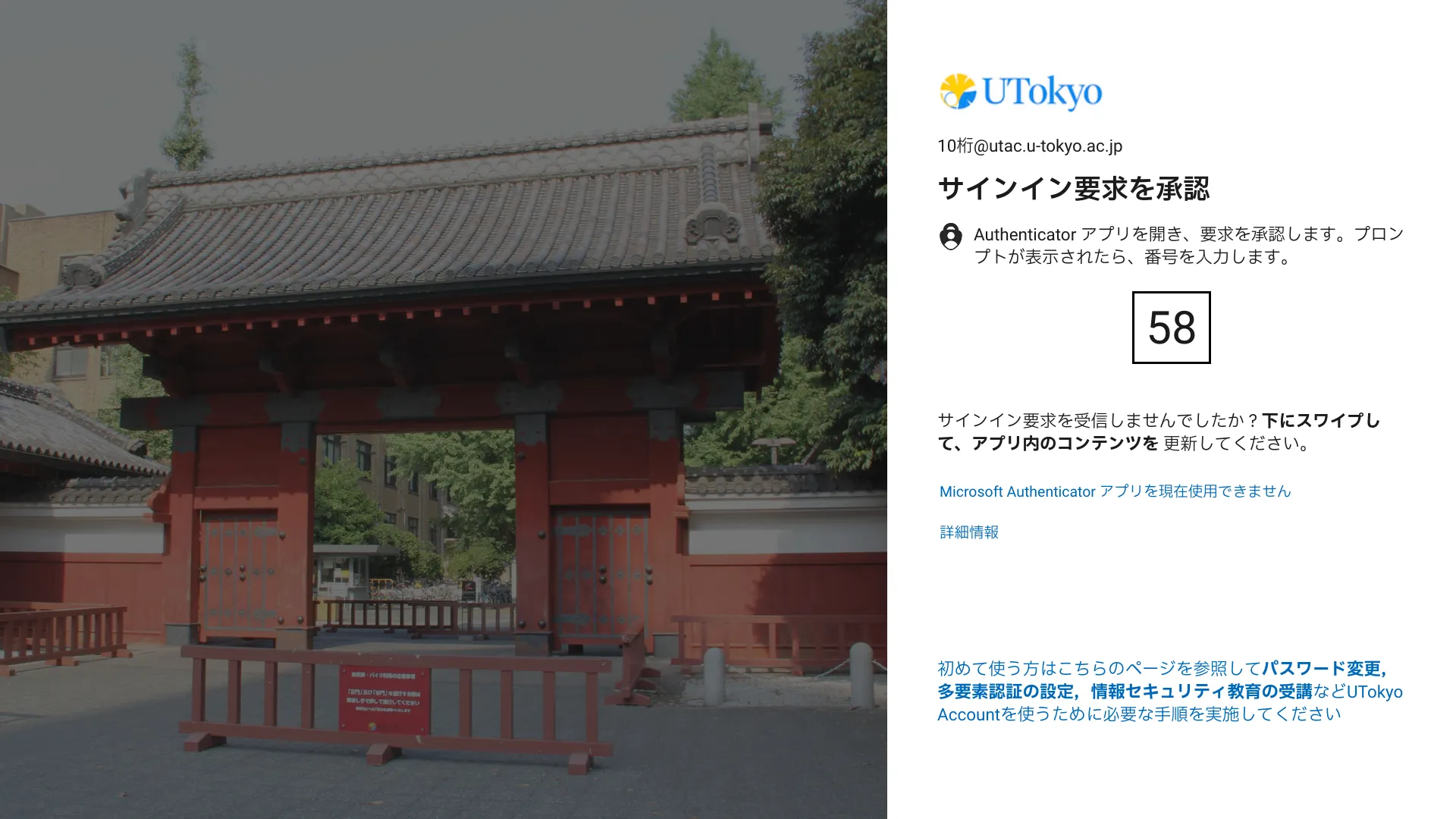 4. 登録した本人確認方法を使ってUTokyo Accountにサインインできるようになります.