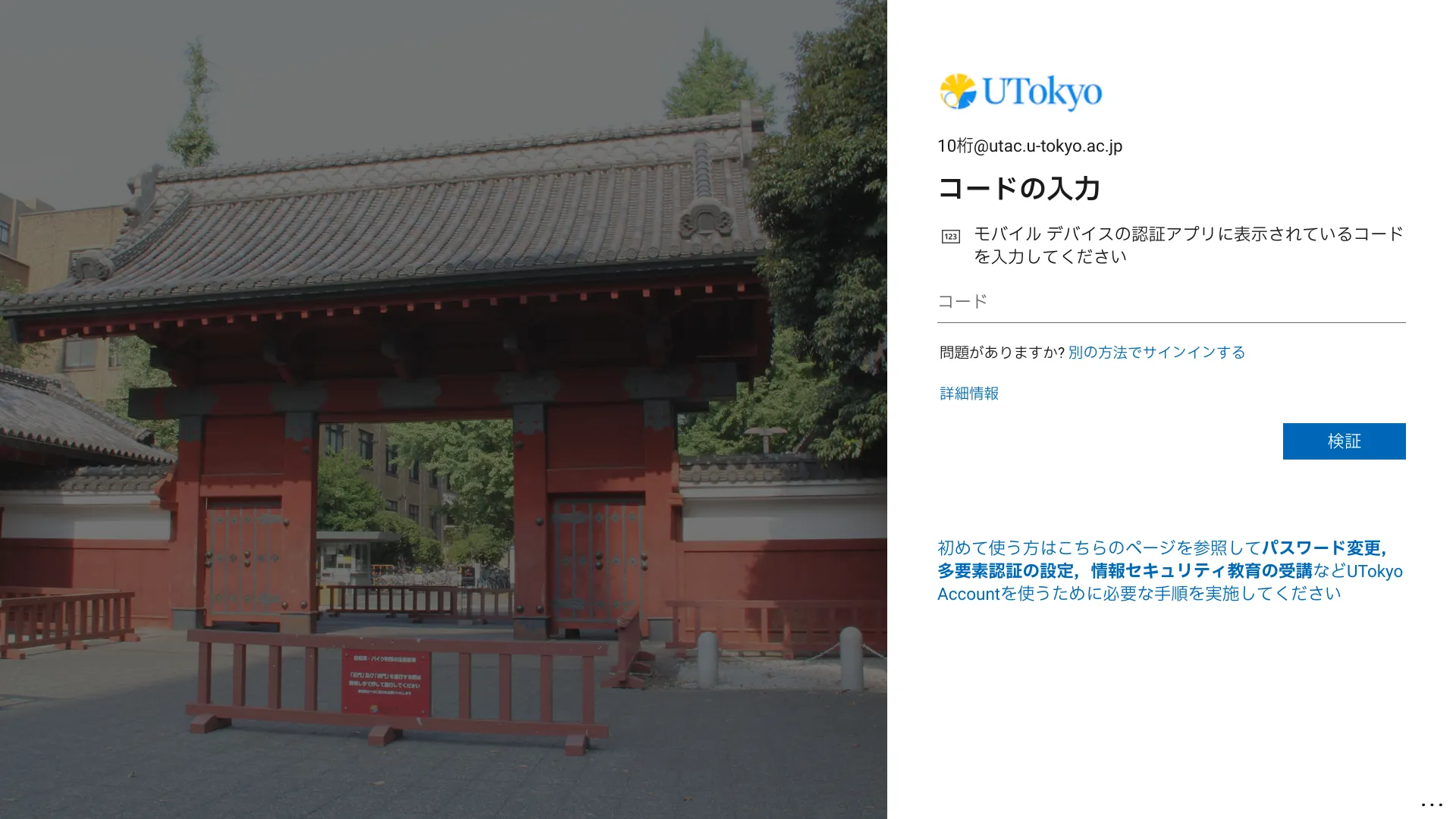9. 登録した本人確認方法を使ってUTokyo Accountにサインインできるようになります.
