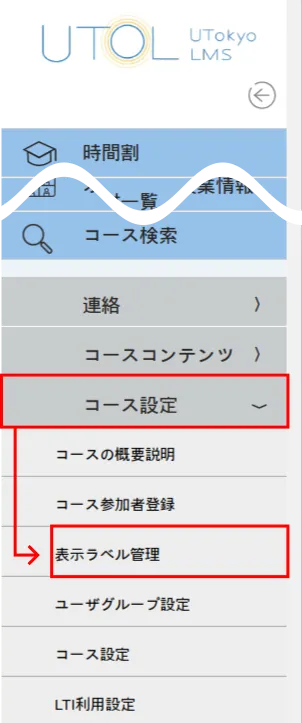 を押すと左側に表示されるメニュー)内の「コース設定」の中にある「表示ラベル管理」という意味です. -